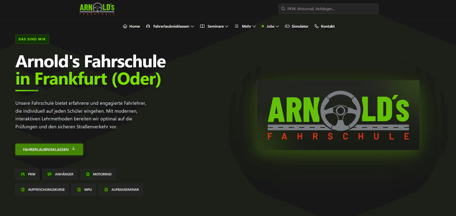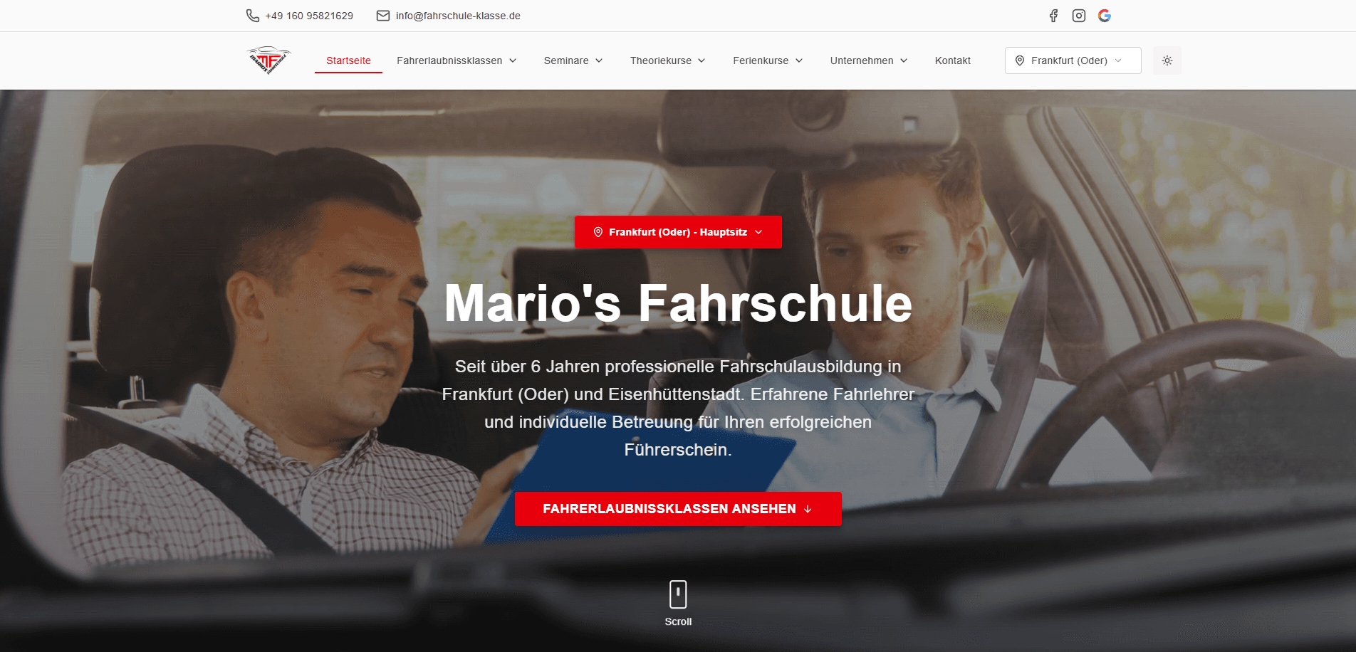 Modern website for a driving school with course overview, driver's license classes and initial contact.