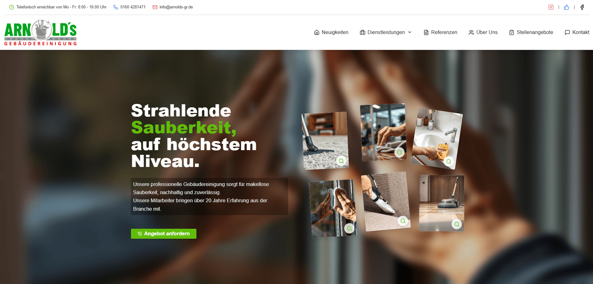 Professional website for building cleaning with service overview and contact form.